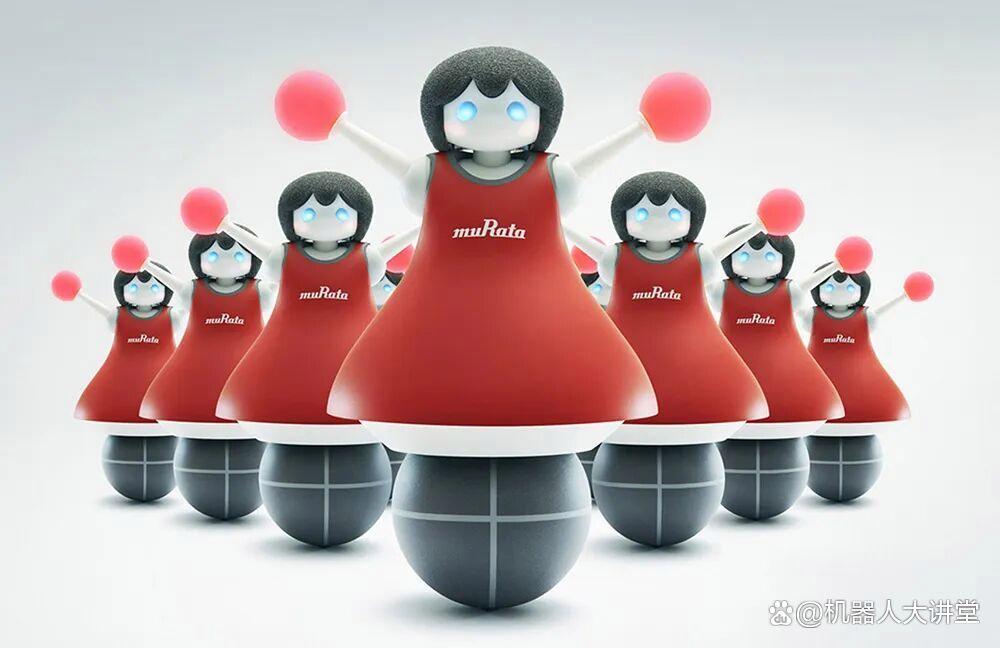 2014年,村田与京都大学合作开发的“机器人啦啦队”,以36厘米高、球状底座的人形机身设计,通过陀螺仪传感器、红外线传感器及无线群控技术,实现10台机器人同步舞蹈且无碰撞。