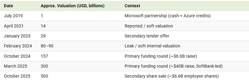 AI产业的资本狂热,不断将头部企业乃至初创企业的估值推向新高度。英伟达成为全球首家市值突破5万亿美元的公司,OpenAI的估值从2024年10月的1570亿美元,一路暴涨至2025年10月的5000亿美元——相当于每月增长290亿美元,每天新增近10亿美元。Anthropic、Mercor等参与者同样增长迅猛,前者半年内估值从615亿美元翻升至1830亿美元,后者在8个月内从20亿美元攀升至100亿美元。
