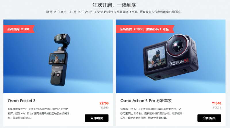 从大疆近期的新品动作上,我们或可窥见一二。据多方消息透露,大疆旗下热门新品OsmoPocket4已进入发布倒计时,而前代产品OsmoPocket3仍面临一定的库存压力。与此同时,大疆在9月刚刚推出了首款拇指相机OsmoNano,进一步丰富了影像产品矩阵,用户与市场关注度颇高。因此合理推测,此次价格突降的核心目的之一,是通过促销释放库存压力,同时吸引市场注意力,为新品“开路”。