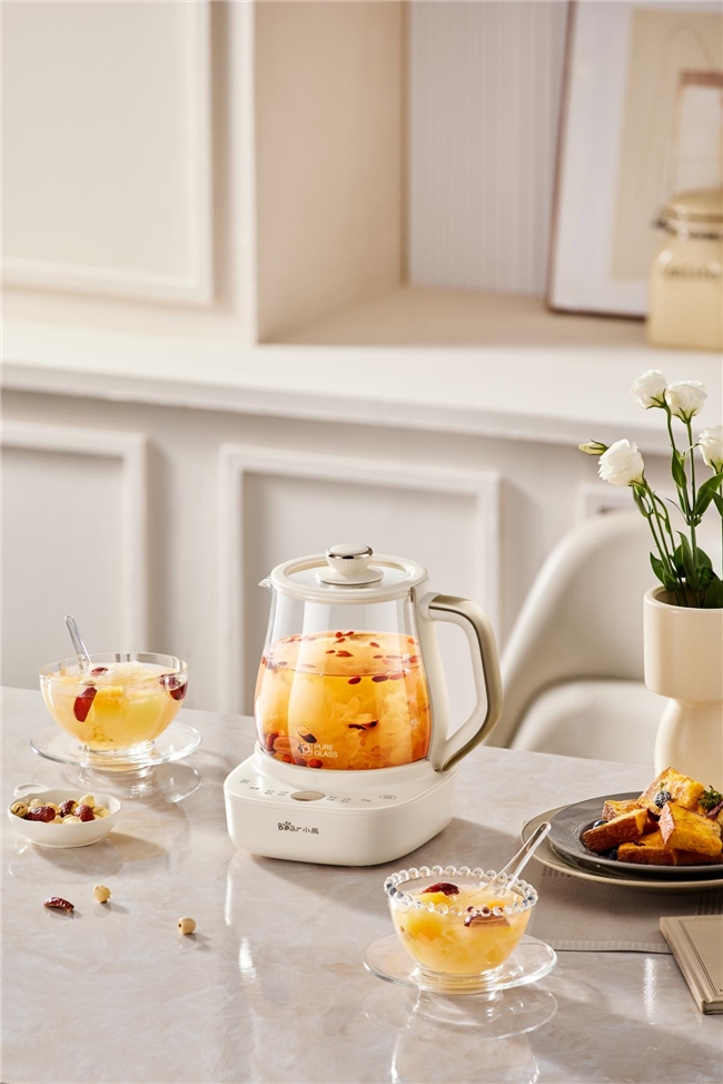 早晨到工位后放入几片黄芪枸杞,按下开关,整理邮件的时间,茶香已袅袅升起;午后小憩前炖份冰糖雪梨,睡醒后温度恰好,滋润又提神。更贴心的是,它还搭载了NTC水温水位双检测系统,不仅能防止沸腾溢出,还能精准控温锁住营养,更好地释放食材风味。