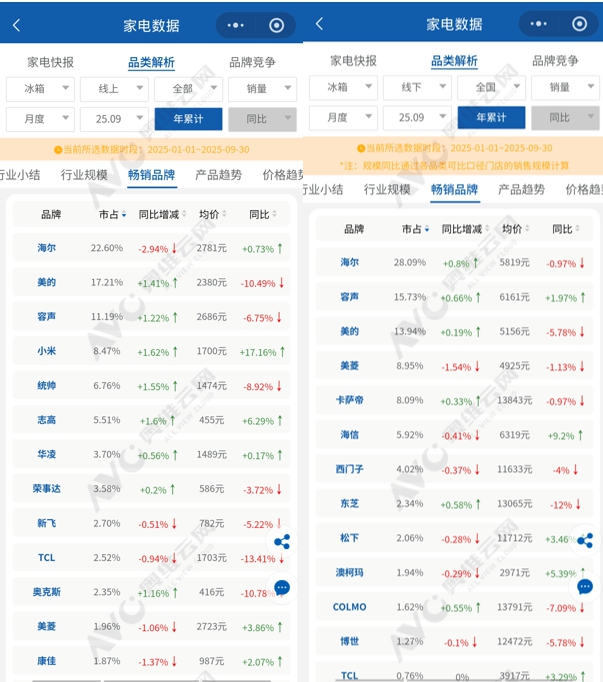 2025年1月至9月,中国冰箱市场在复杂的宏观经济环境与消费分层趋势下,展现出鲜明的“双轨制”发展特征,即线上与线下渠道在规模、均价、品牌竞争格局上呈现出截然不同的面貌,整体市场在结构性调整中寻找新的平衡点。