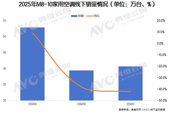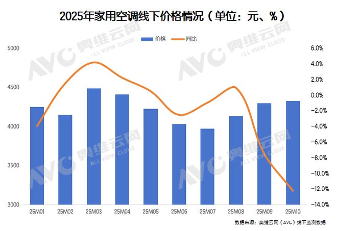 空调市场价格的反复波动严重影响了渠道信心,多数经销商陷入价格观望状态。据奥维云网(AVC)监测数据,2025年三季度空调线下均价同比下降3.9%,10月线下均价降幅达12.2%。这种价格反复不仅让消费者难以判断合理入手时机,也让经销商面临巨大的库存贬值风险,经销商不敢盲目进货,担心后期价格回调导致亏损,价格体系的不稳定导致渠道拿货意愿降至年内低位。