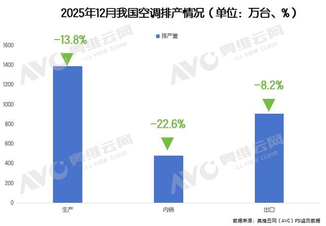 12月空调排产降幅的进一步扩大,是内销端零售疲软、高库存压制、渠道价格观望与出口端高基数效应叠加作用的结果,短期内行业调整态势仍将延续。但这一过程也加速了行业的结构性洗牌,加速企业从规模竞争转向价值深耕。