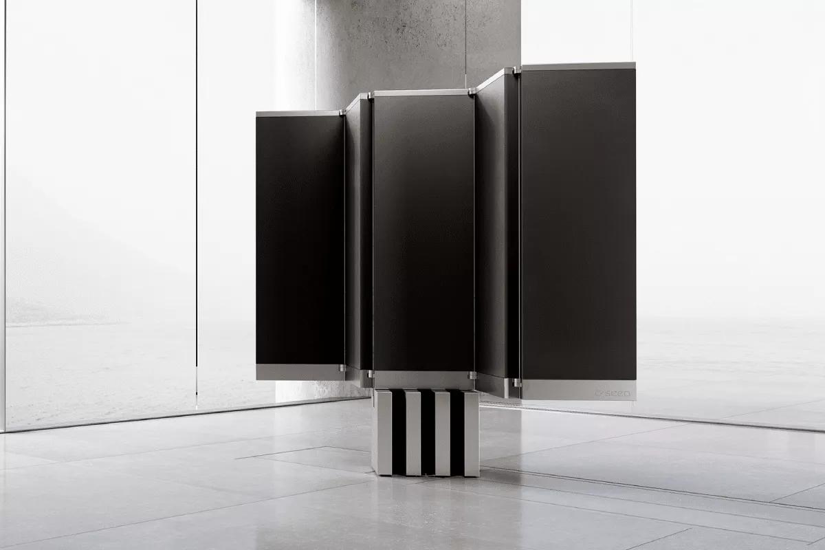 让一块103英寸乃至221英寸的屏幕实现折叠,其核心是一场精密机械与前沿显示技术的共舞。CSEED的答案,是将屏幕分解为五块(户外版七块)独立的MicroLED面板,并赋予它们一套如高级腕表机芯般精密的展开机构。整个过程耗时约85秒:先是基座如舞台般将屏幕整体抬升、旋转至垂直,随后各块面板如折扇或羽翼般徐徐展开,最终通过自适应校准技术实现像素级的无缝拼接,形成一块完整、无接缝的巨幕。