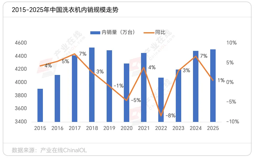 同期产业在线数据也显示,自2020年以来,中国洗衣机市场环境发生显著变化:家庭保有量已接近饱和,新增需求明显乏力,行业增长核心动力逐渐转向老旧产品的换新需求。与此同时,市场竞争焦点也发生转移,企业开始聚焦差异化创新,以适配消费者日益精细化的洗护需求。这一转型反映了市场从追求规模扩张向注重质量提升的转变。