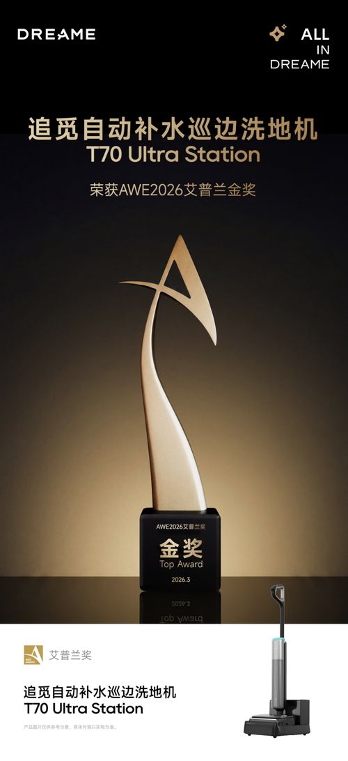 在本届AWE2026展会期间,追觅T70UltraStation获得了家电界最高荣誉--艾普兰奖金奖,也是本届展会唯一一个获得艾普兰金奖的洗地机品牌,以创新实力再次展现了品牌在洗地机领域的领先实力。