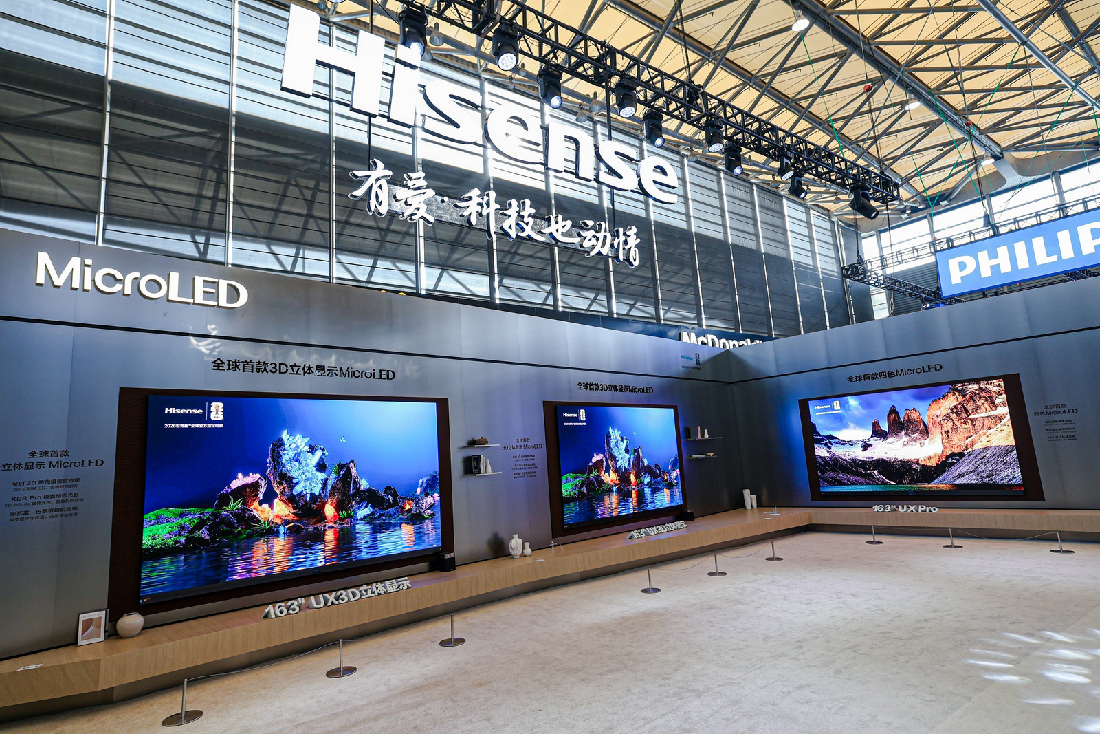 在AWE2026上,海信在显示品类布局上给人最直观的感受就是“色彩、彩色”这个核心词。海信亦是唯一打通RGB全彩光源在三大高端品类(RGB-MiniLED、MicroLED、激光显示)的厂商。