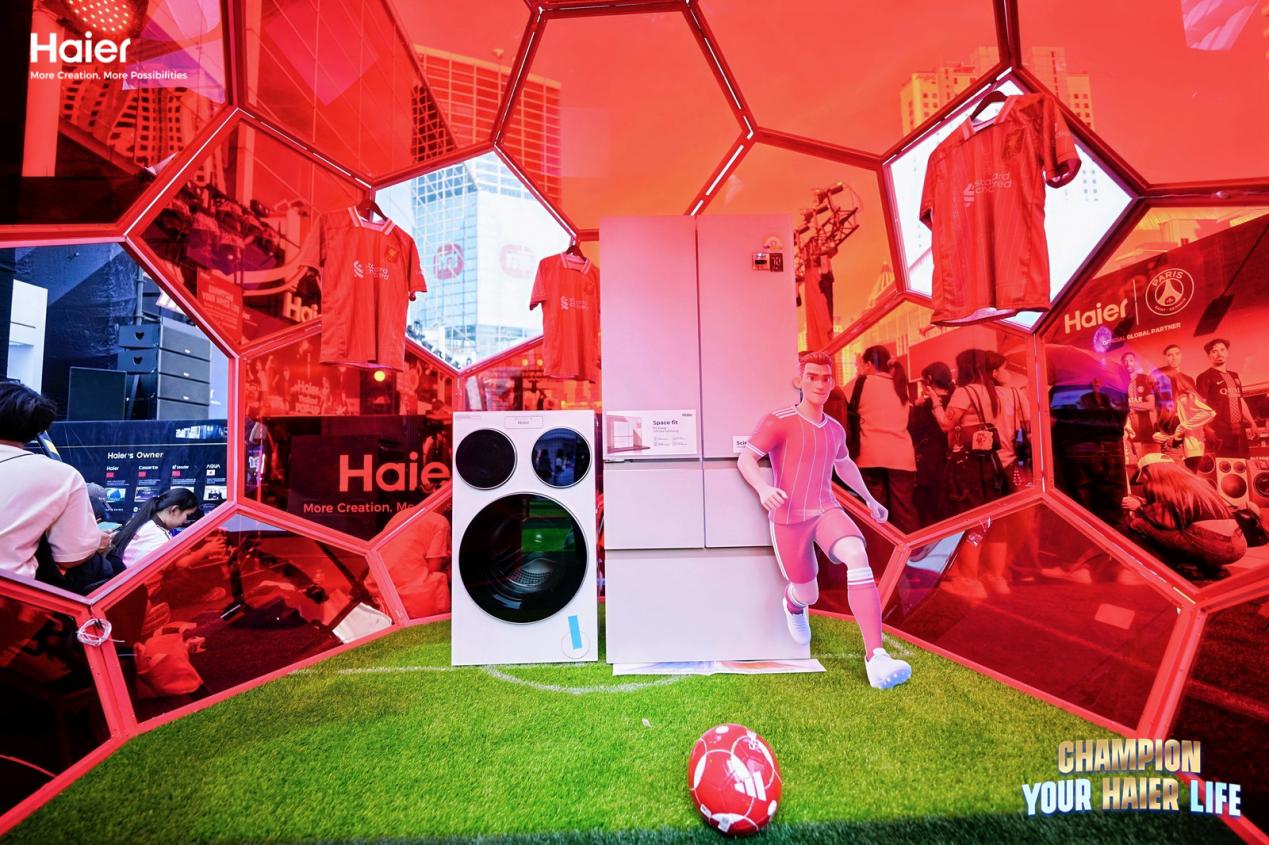 1月28日,海尔泰国在曼谷Central World商圈启动了一场为期五天的快闪展示,正是这一全球营销理念的本土化实践。现场融合体育互动装置、利物浦与巴黎圣日耳曼足球俱乐部IP、本土服饰换装、AI拍照及明星体验等多种元素,整体设计紧密贴合年轻人兴趣偏好,精准触达年轻消费群体。