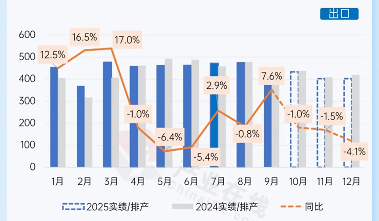 2、总排产同比基数为上年的产量实绩,内销和出口排产分别对应上年的内销和出口实绩数据;
