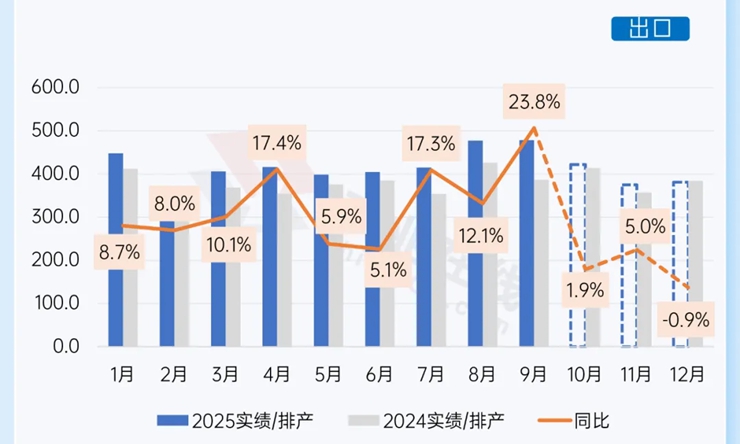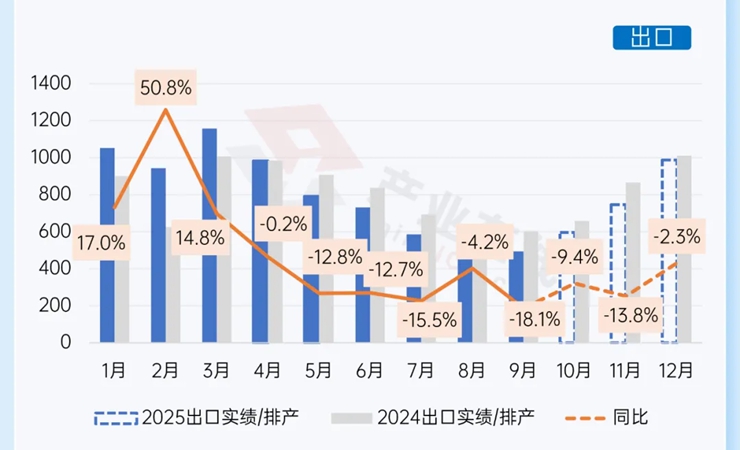 此外11月排产下滑明显,也受到同期高基数效应的影响,去年同期被国补政策推高的出货规模,给今年四季度内销市场带来了明显的增长压力。