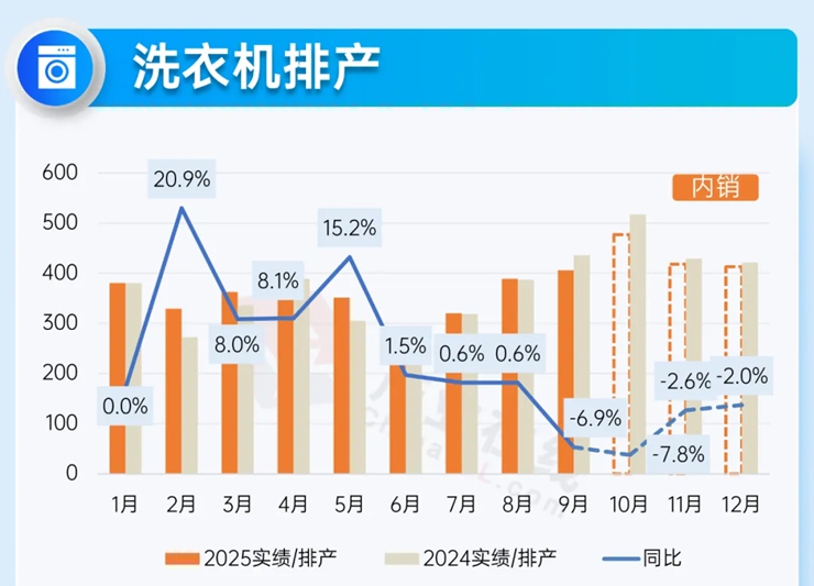 据产业在线最新发布的洗衣机排产报告显示,2025年11月洗衣机内销排产418.0万台,较去年同期内销实绩下滑2.6%。