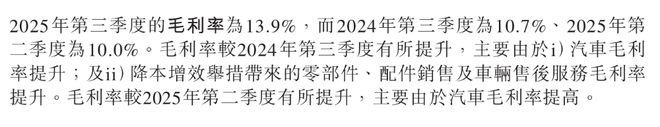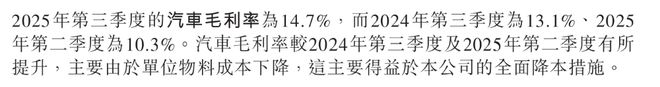 对于2025年第三季度毛利率的同比增长,蔚来方面解释为主要由于汽车毛利率提高。