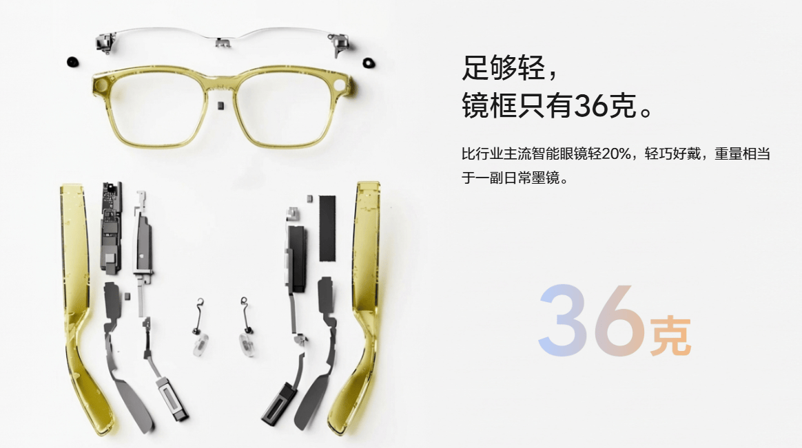 对于那些对AI功能毫无需求的普通消费者,Livis首先是一副好用又划算的日常眼镜,36克的超轻机身堪称核心亮点,它比MetaRay-Ban轻13克,比小米同类产品轻4克,长时间佩戴也不会有压鼻夹耳的不适感。
