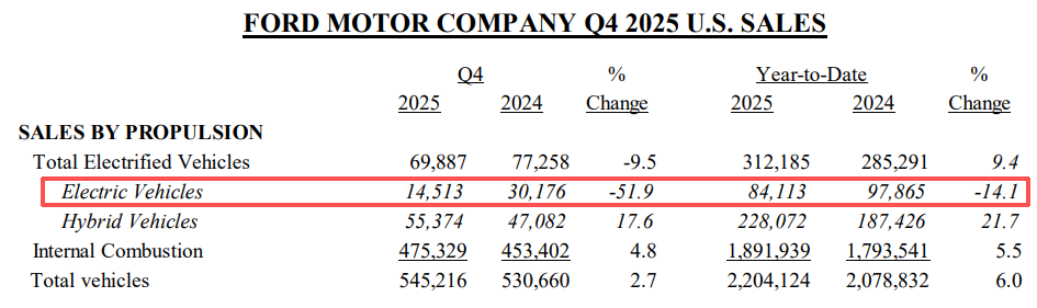 特别是在大本营美国市场,补贴退坡给电车带来的“打击”,席卷美国车企。2025年,福特在美国市场的销量为220万辆,创2019年来的最好成绩。