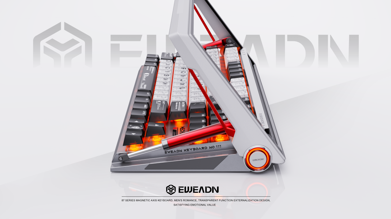 EX01滕王阁款,色彩哲学汲取自《滕王阁》中的"潦水尽而寒潭清,烟光凝而暮山紫"等经典意象,将文学意境转化为现代设计语言,并以"建筑可阅读"为理念,通过6063铝合金机身重现古建结构美学,24K金键帽隐喻文明传承,使科技产品成为 "可触摸的文化遗产"。