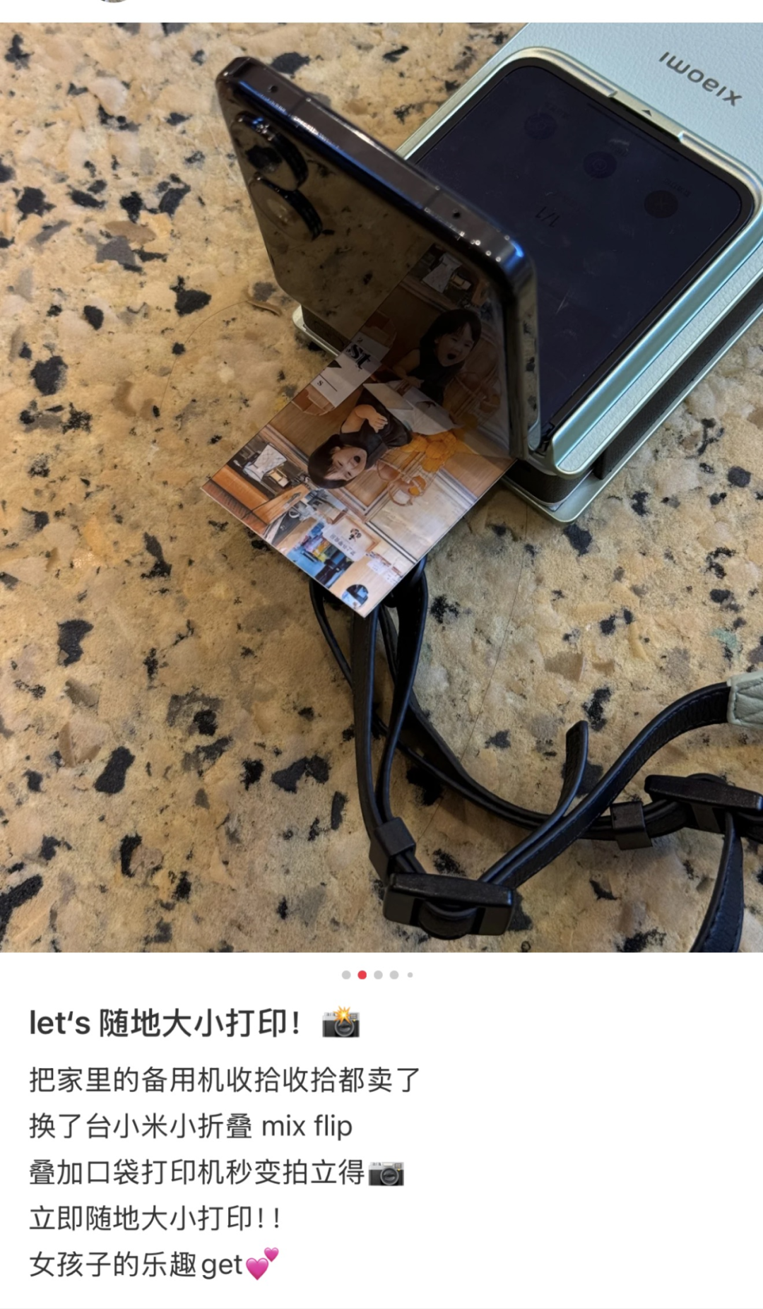 比如小米Flip因为口袋打印机的配合而出圈,引起很多年青女性用户的关注。今年的Flip2还是可以支持口袋打印机,却无法重现去年的效果。