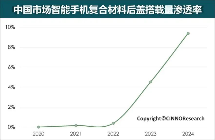 消费者愿意为设计买单,不同材质有不同的受众。据CINNOResearch市场监测数据,2020年至2021年,中国智能手机复合材料后盖市场以素皮材质为主导,主要应用于高端旗舰机型。2022年,玻纤材料进入市场,2023年伴随锦纤材料的加入,素皮与玻纤后盖机型销量实现同比翻倍增长,推动复合材料后盖渗透率同比提升4个百分点。