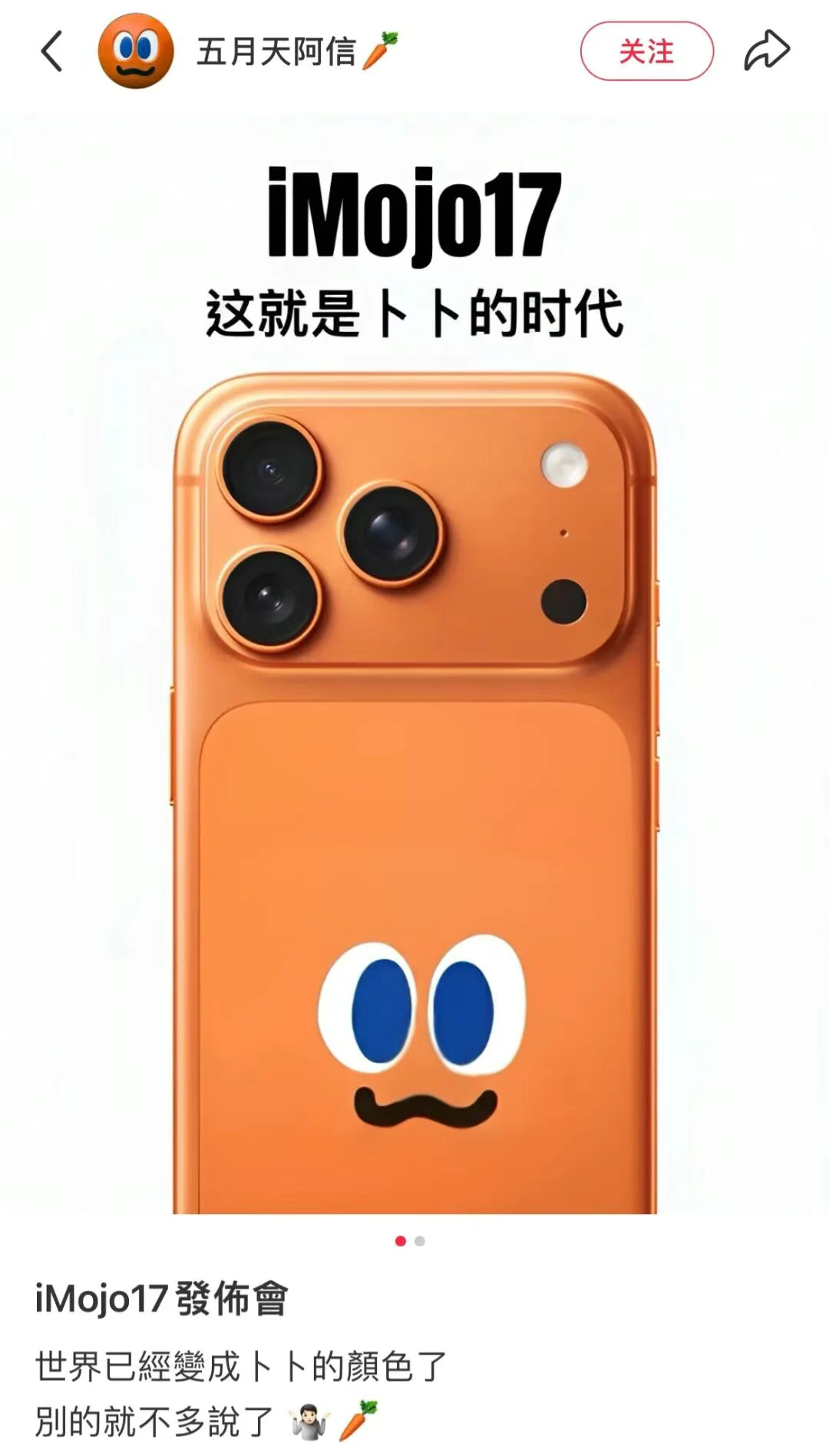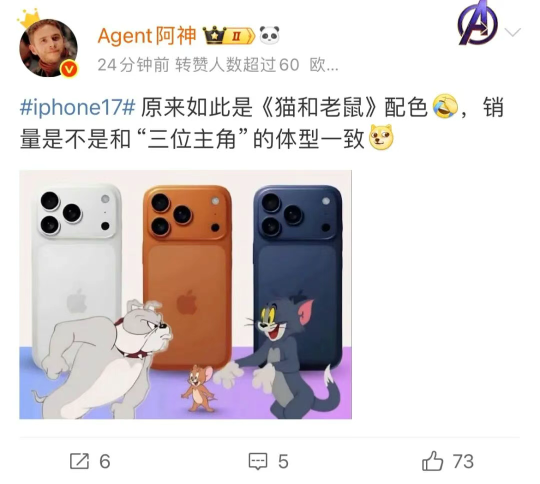 “看配色就知道是最新款”,这一点在今年的iPhone17系列上得到了最佳作证。星宇橙色一经推出,就幸运地成为了网友们玩梗的绝佳素材。
